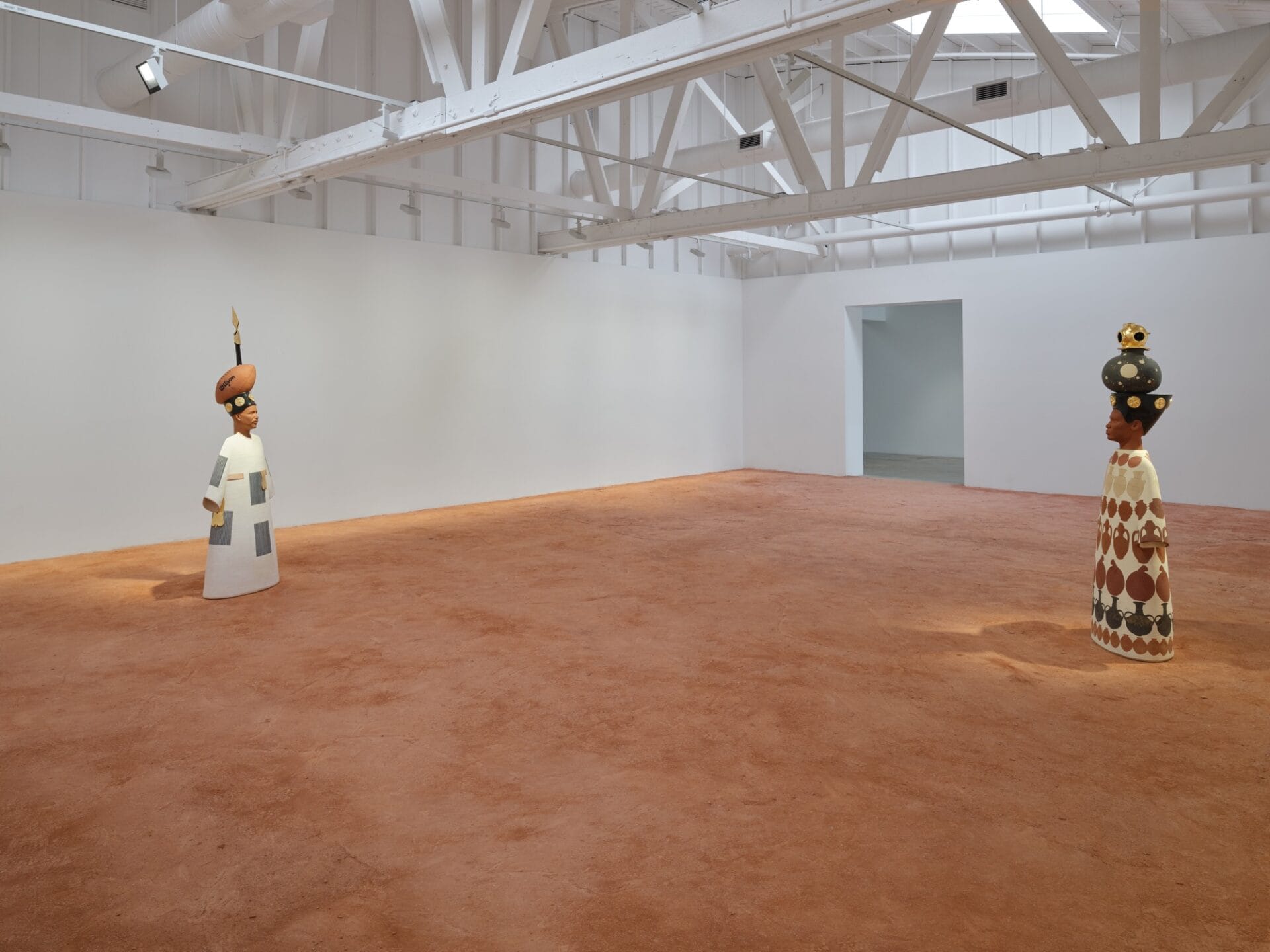 In one installation, “Matthew Henson (Hunter’s Shirt Stacked with Football and Spear)” stands adjacent to “Andrea Crabtree (Potter’s Shirt Stacked with Diver’s Helmet),” both homages to their respective subjects, situated like timeless totems in a desert-like expanse. In another arrangement, busts of legendary African queens like Amanirenas, Moremi Ajasoro, and Makeda—the Ethiopian name for the Queen of Sheba—are carved from marble. Adorning the works with real, flocked hair, Strachan venerates both ancient historical figures and Black hair itself. […]