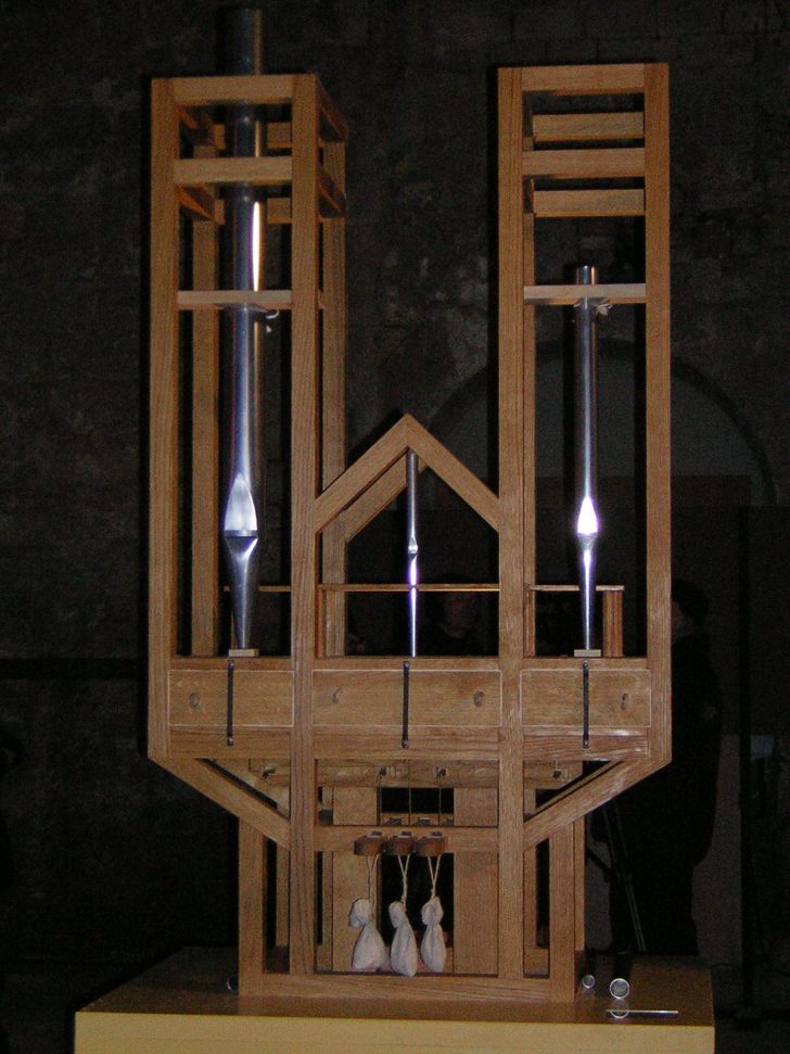It takes place in the church of a nun’s cloister founded in the 13th century. It’s an old building, with bare stone walls, a floor that’s mostly gravel, and a wood roof. The organ inside does not look like a typical organ. Placed in the middle of the room, there’s a wooden structure with two towers and some metal pipes coming out of it. The pipes make one continuous sound — a chord — that fills the room at all times, at least until until the chord change, when the organ will play a different single sound.