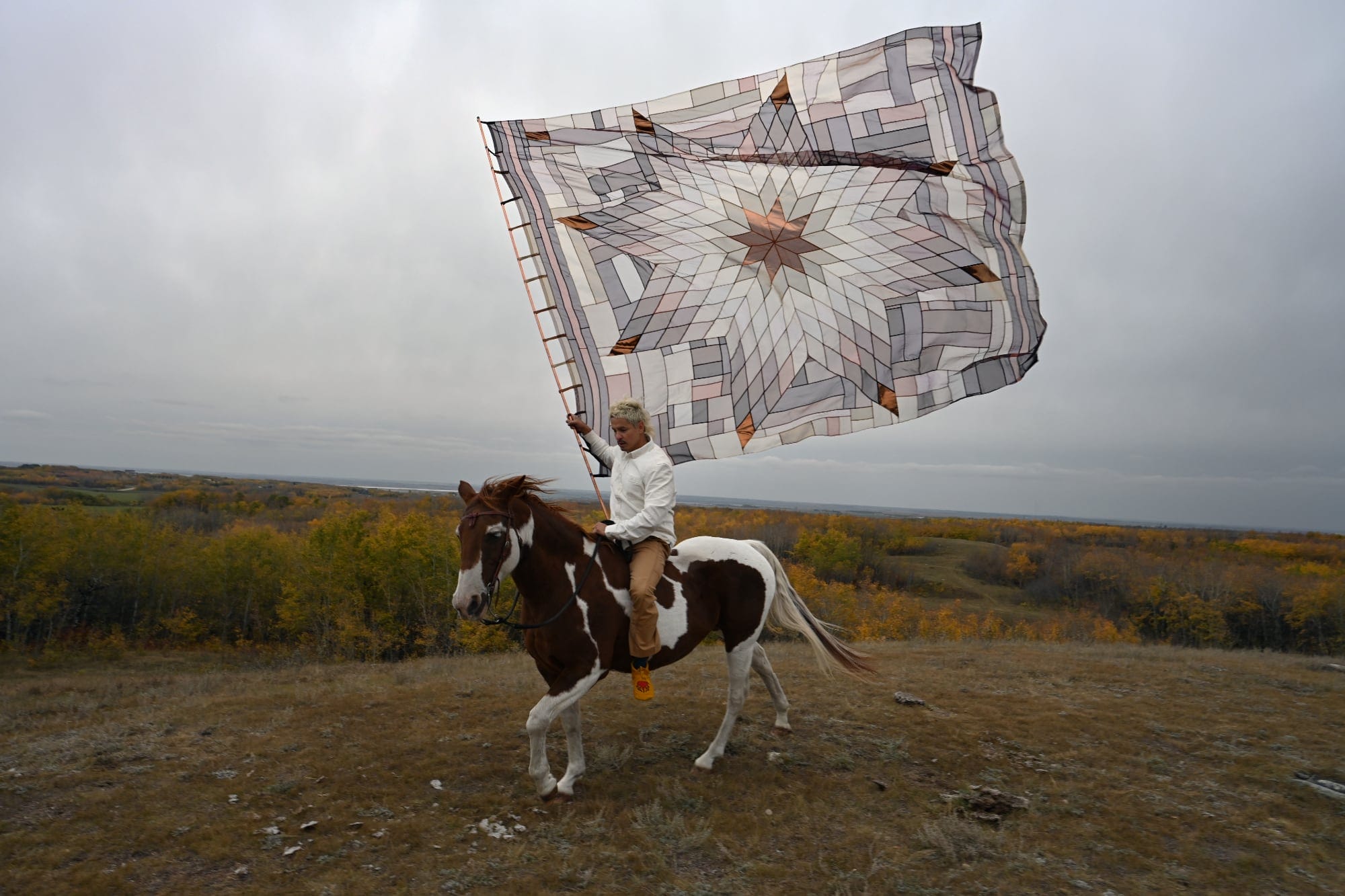 The quilts honor Indigenous ethics and traditions, while reflecting on their values today. For Indigenous Peoples, this practice of quilting was consistent with the value systems of provisional efficiency and rural thriftiness,” he says. “By itself, a quilt is a patchwork of tiny scraps combined to make a greater object, a testament to craft and labor.”