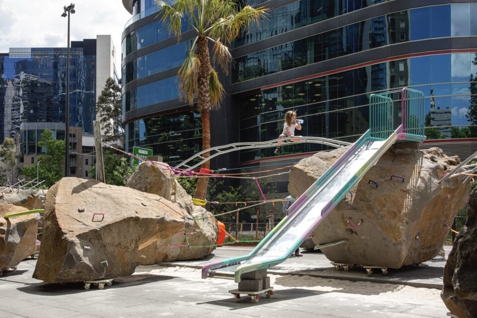 Included is Mike Hewson’s seemingly perilous design in Melbourne, which perches massive boulders attached to slides, monkey bars, and other equipment on tiny wheels fit for a skateboard (don’t worry: they’re secured with rods).