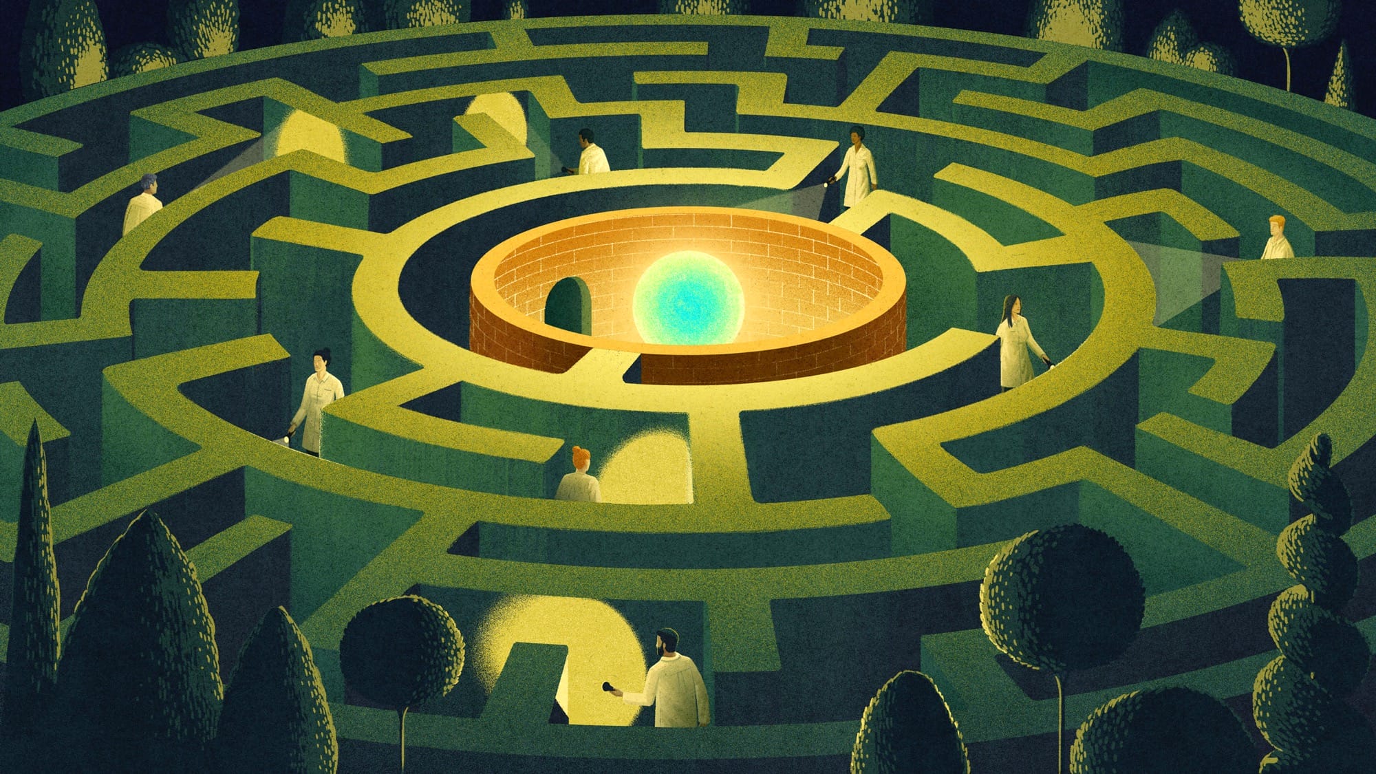 Illustration for ‘Quanta Magazine’ about the history of Neutrino research. All images courtesy of Myriam Wares