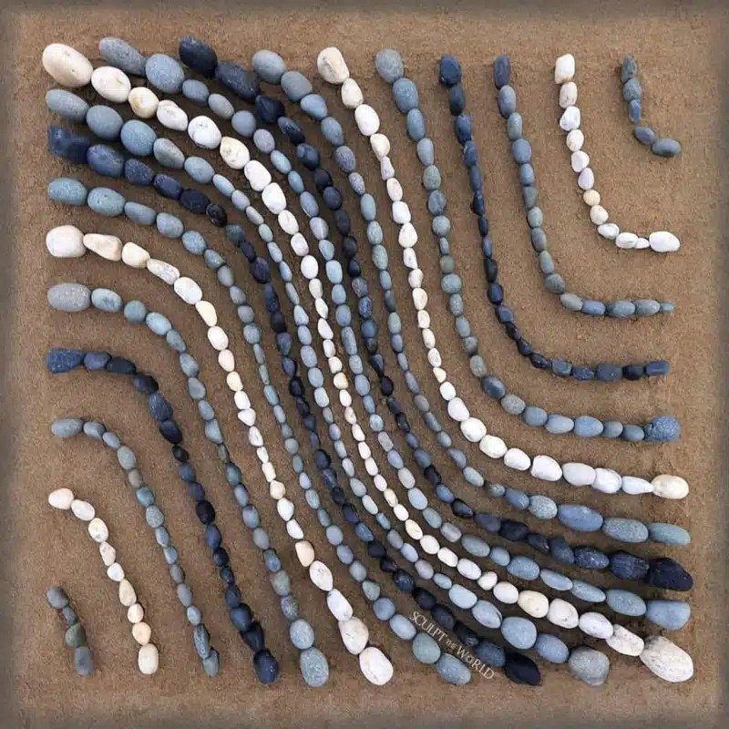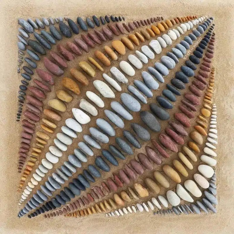 For years, artist Jon Foreman has spotlighted the organic shapes found in nature. In his breathtaking land art, Foreman takes colorful beach rocks, molded by thousands of years by the seaside, and creates geometric patterns with them. Although he has created countless circular, swirling shapes, Foreman recently decided to experiment with more rigid compositions, laying the rocks within invisible square frames. By doing this, it’s as if the artist marries the natural with the manmade, creating optical illusions in the process.