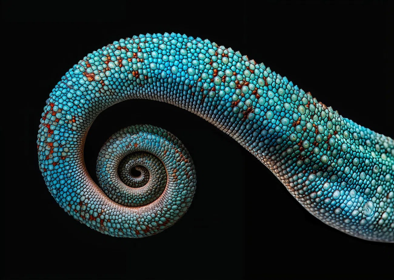 The fascinating tail of a chameleon – a master of camouflage – reflects the complexity and beauty found in every corner of nature.