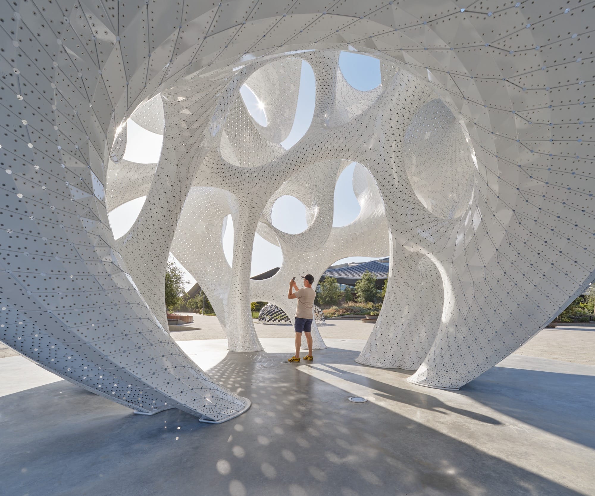 From geometric, white panels riveted together into an undulating sphere, Marc Fornes / THEVERYMANY’s newest public installation invites visitors to immerse themselves in a luminous experience on Google’s Charleston East Campus in California.