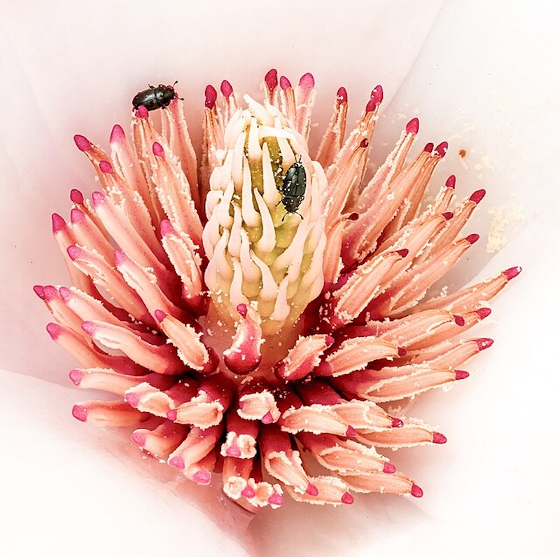 Many people begin to notice the arrival of spring with the large, beautiful blooms of the magnolia flower. Magnolia trees can be found in many parts of the world, and their beautiful forms have symbolic, medicinal, and visual meaning across cultures—and have for centuries. If you’re ever near a magnolia tree, though, look closely: you’ll notice that beetles, instead of bees, will be moving amongst the flowers.
