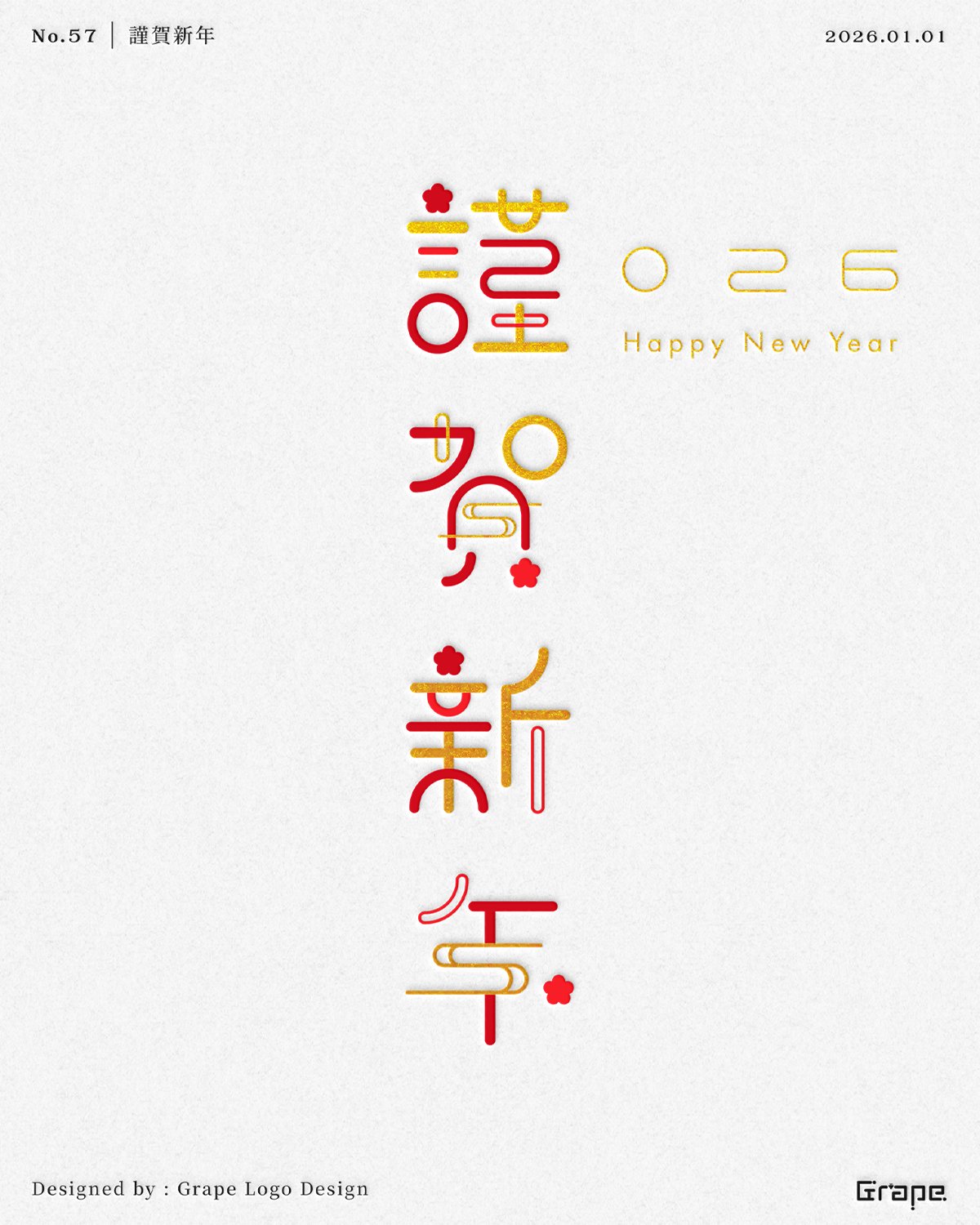 Graphic designer Grape Logo Design specializes in original fonts, such as this one which reads 謹賀新年, the formal way of saying Happy New Year in Japanese.