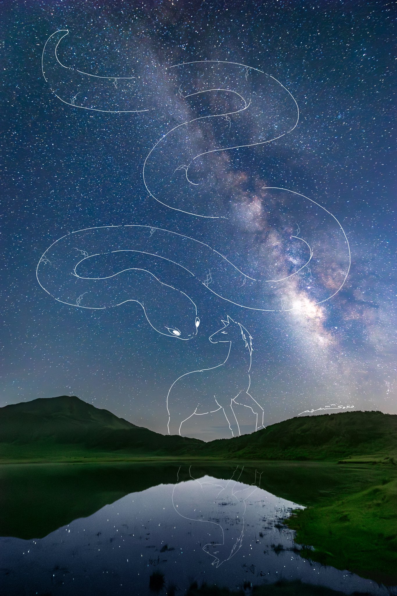 The transition from year of the snake to year of the horse was also a common motif, and art duo Sara capture it in their signature style of doodling on the other’s photograph.